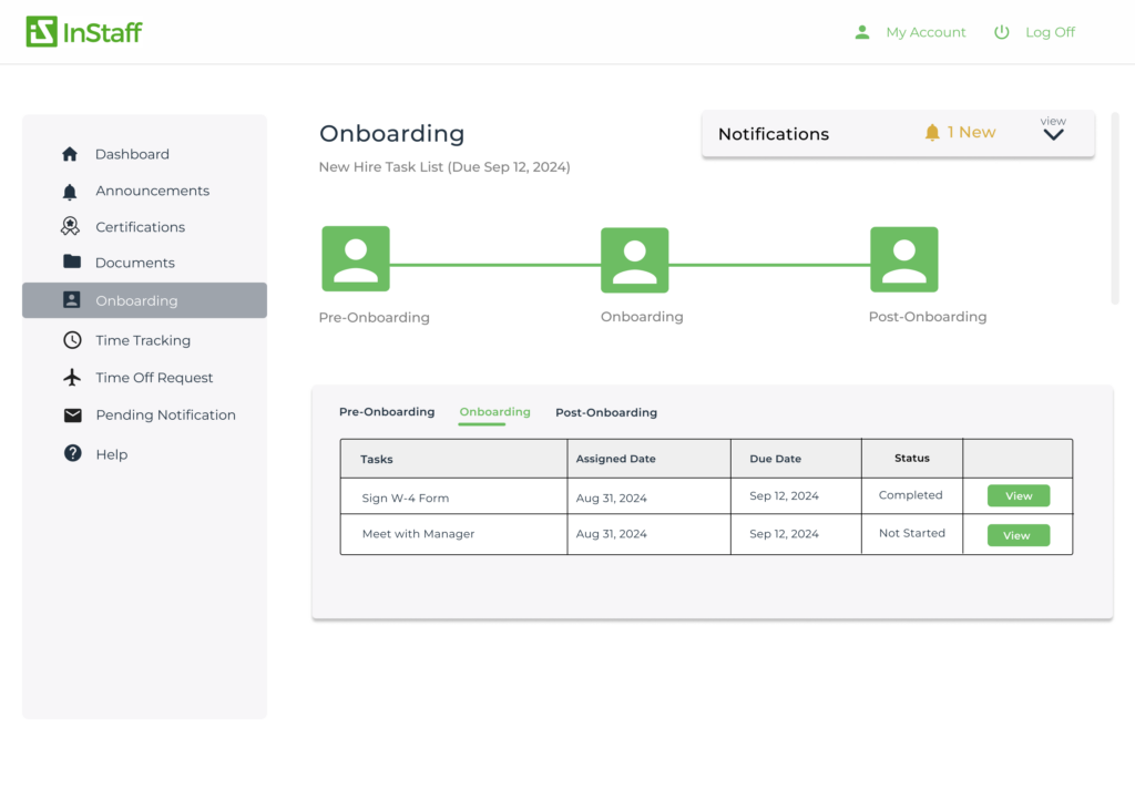 InStaff's paperless onboarding and document management features simplify the administrative workload, ensuring that new hires can get up to speed quickly and that all necessary records are easily accessible and compliant with regulations.